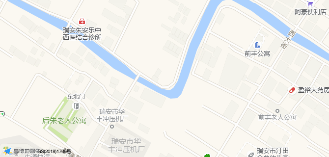 温州市瑞安市塘下镇鲍田朱华路18号后朱新桥大榕树边